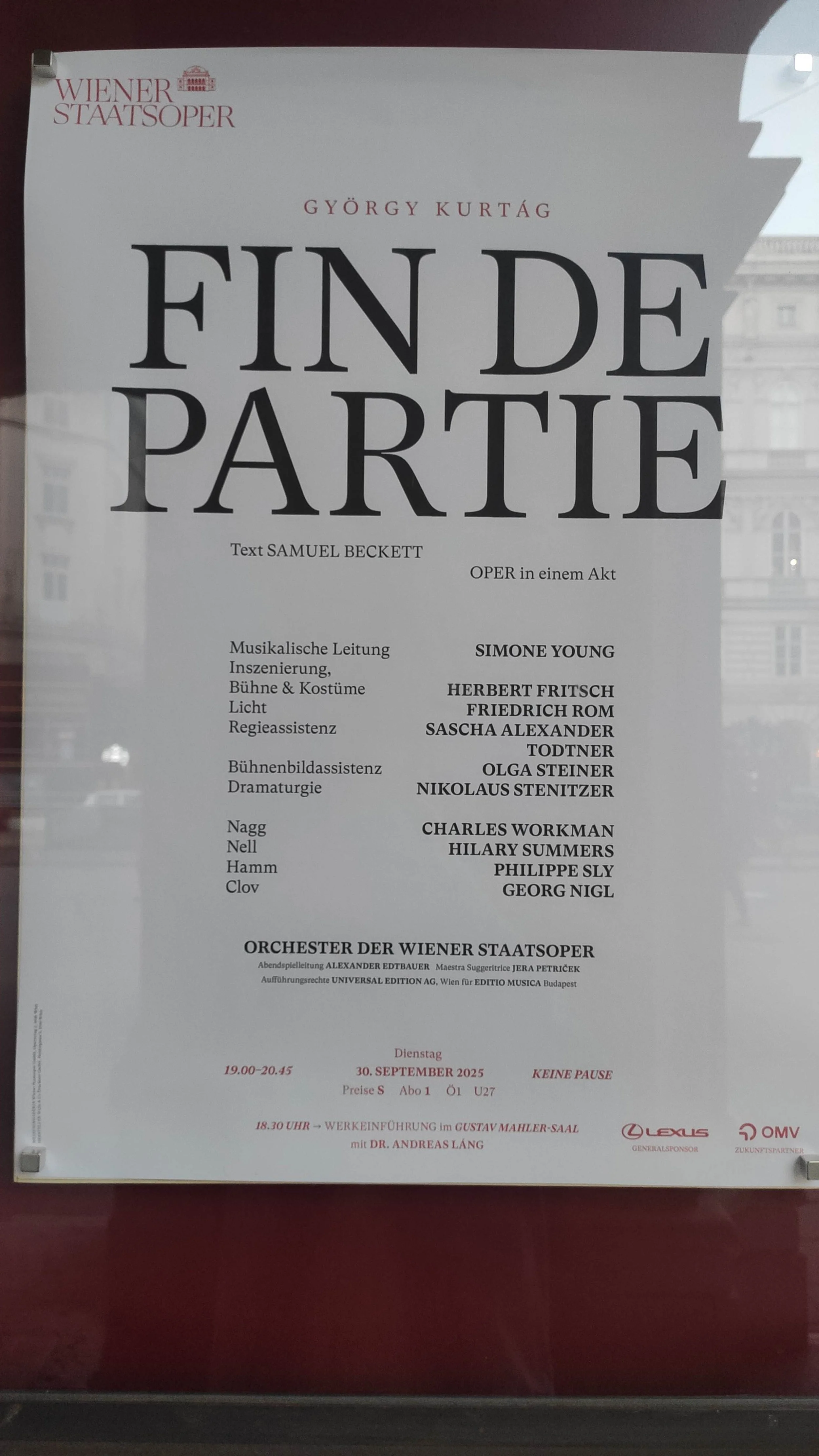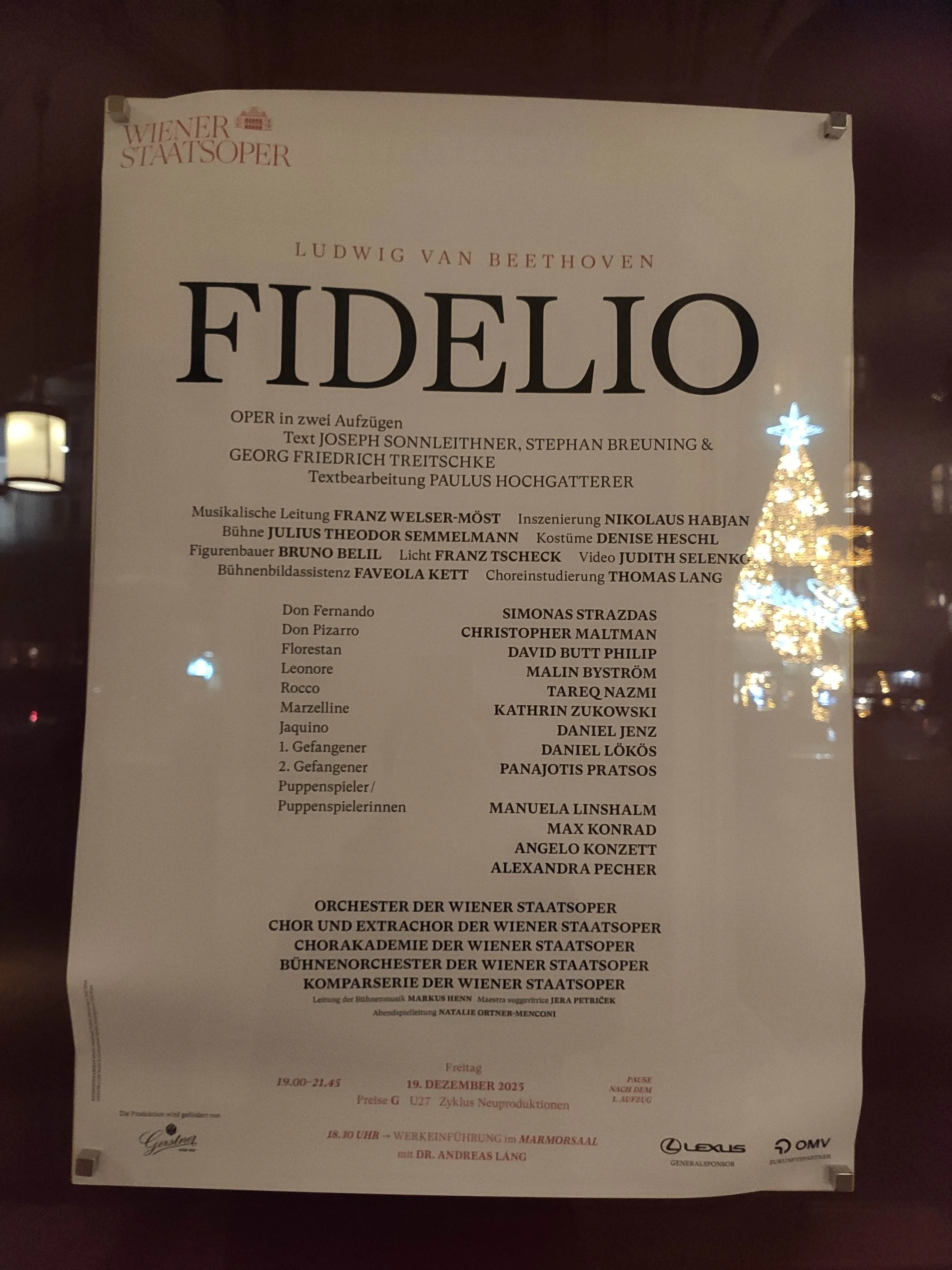 Every evening before the first show of a series I make a photo of the official opera poster, as a cherished memory and also because it has my name on it in small print at the bottom. The photos reflect the different lengths of day we have in Vienna, and sometimes there are people behind me, trying to look at the poster as well. I am very happy to work with so many inspiring conductors and singers, as well as our fabulous pianists!